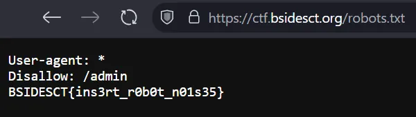 Flag: BSIDESCT{ins3rt_r0b0t_n01s35}