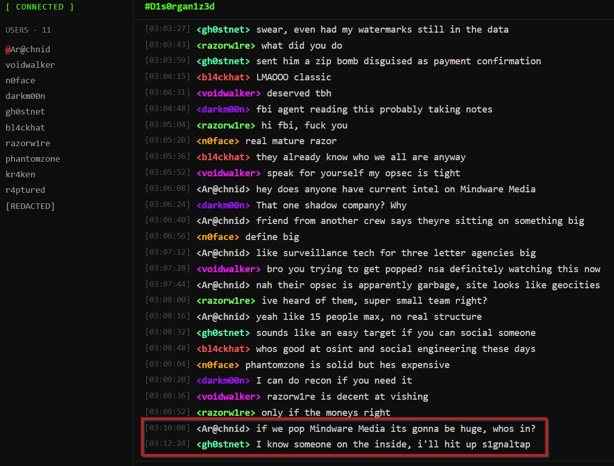 You recently joined Disorganized Arachnid, one of the most notorious hacking groups in the game. You log on for the day and see they’re hunting for their next target. Read through the chat logs and see what you all are going to hit next.
