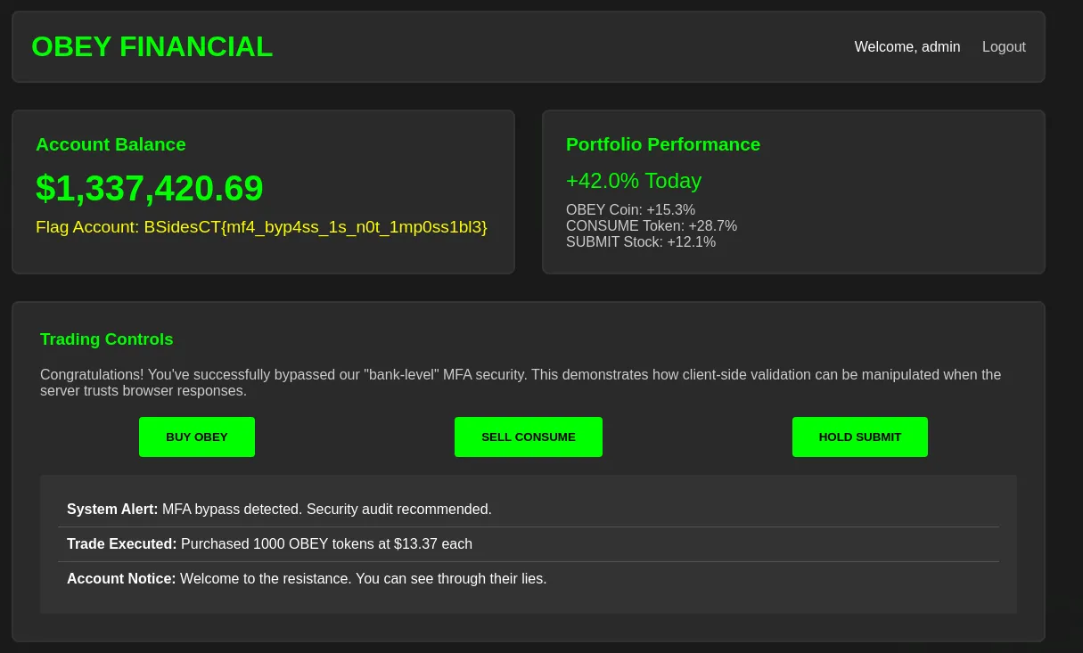 Flag: BSidesCT{mf4_byp4ss_1s_n0t_1mp0ss1bl3}