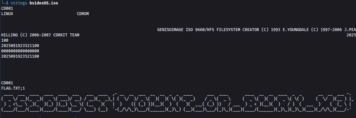 Looking at the file, we see that it’s just some ASCII art and a little message at the bottom saying the flag isn’t in the file.