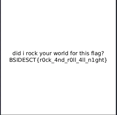 Flag: BSIDESCT{r0ck_4nd_r0ll_4ll_n1ght}