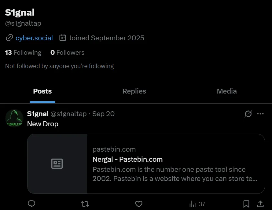 Looking at the user’s X account (which requires you to be signed in), we can see that the user has a Pastebin, which is notoriously known for having malware and leaked data stored on it.