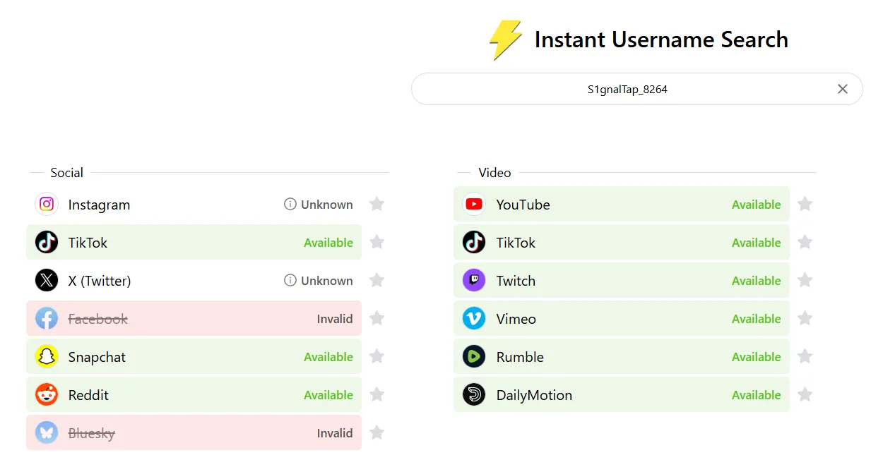 appear. This user is our person of interest during this challenge, and we need to figure out where their username is being used. To do this, a site called Whats My Name can be used to retrieve information about a specific username. This website will scrape and try to identify where the user is registered on different social media.
