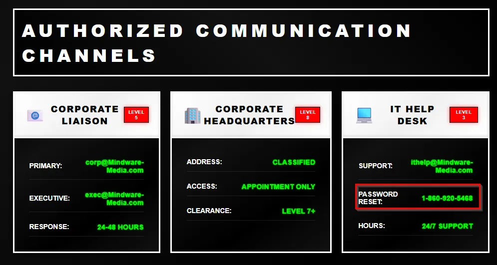Looks like this one is all on you. Put on the glasses and start to build out the employee’s foot print and look for a good target to find our in.