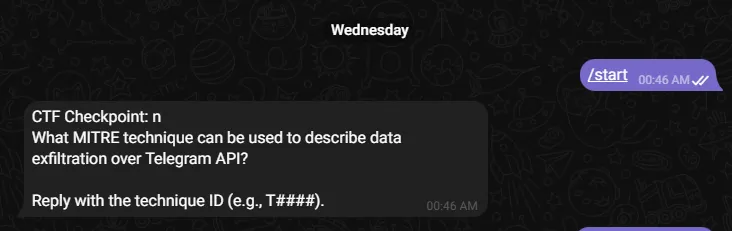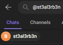The TG stands for Telegram, so this appears to be a Telegram bot. Unfortunately, during the CTF, a participant ruined it for the rest of the folks, and this challenge had to be switched. This is the newer version; the older version will appear later on the blog. With this solution, you will need to create a Telegram account. After creating, you can search for the @st3al3rb3n_bot on Telegram, and begin messaging the bot.