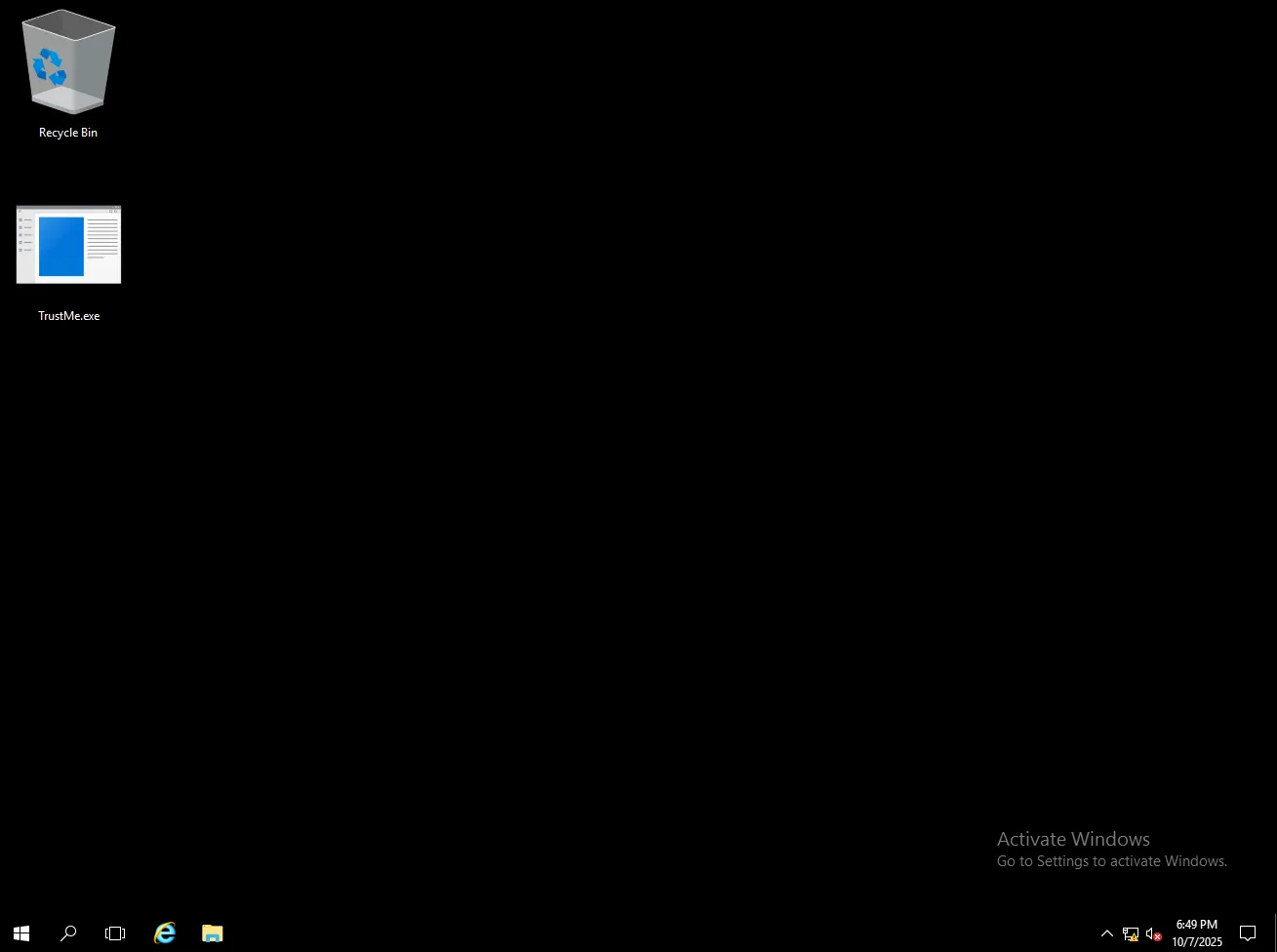 Logging into the Windows machine with the credentials provided using xfreerdp, we can see there is a TrustMe.exe file.
