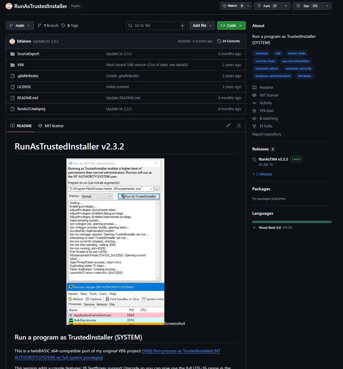 wget https://github.com/fafalone/RunAsTrustedInstaller/releases/download/v2.3.2/RunAsTI64.exe