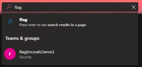 Logging into the application, we can use the search bar at the top of the webpage and search for flag. We see a security group named ‘flag’.