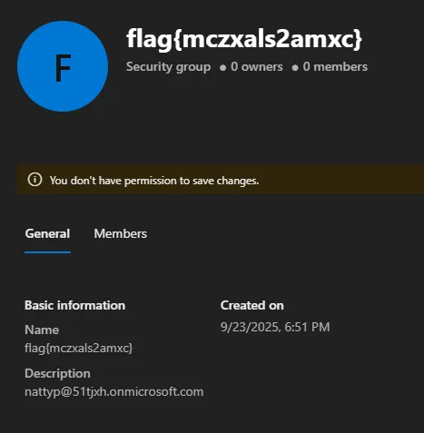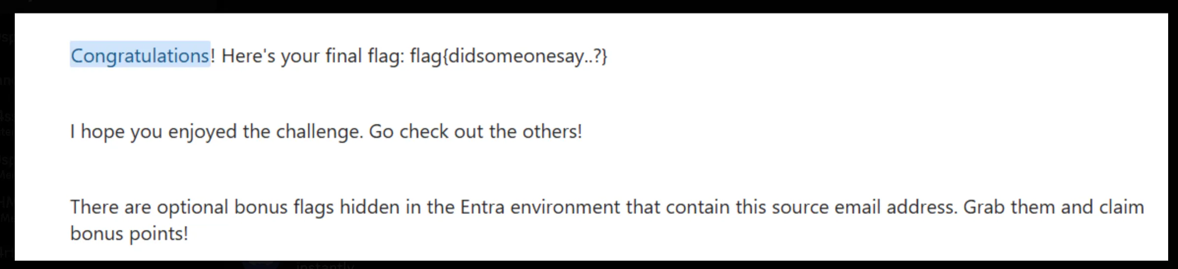 This flag was not like the rest. While enumerating the EntraID tenant, you would see that each user had 4rhdc6.onmicrosoft.com in their email address. When finding the c flag, we see something interesting in the Description.
