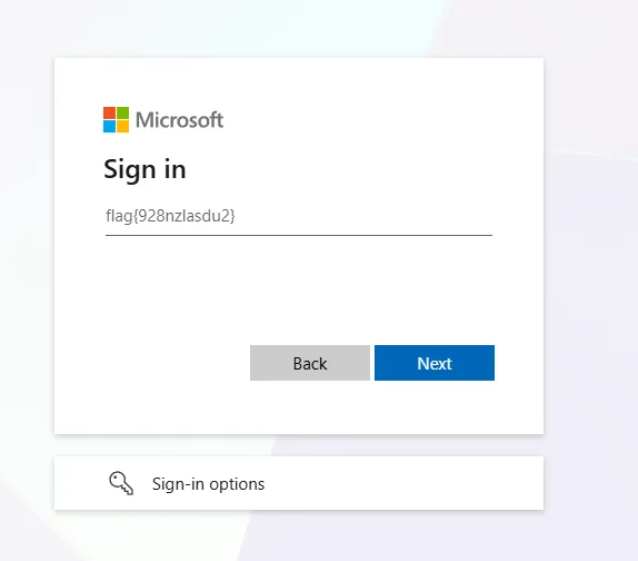 Clicking Next, we can see the flag is the placeholder in the Sign In input field.