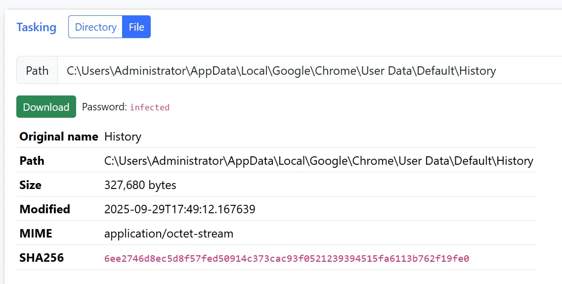 With this information in mind, we need to see the information stored on Google Chrome, since that is most likely where these files were downloaded from. We can find the Google Chrome History located at C:\Users\Administrator\AppData\Local\Google\Chrome\User Data\Default