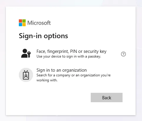 With the credentials obtained from the scribble.dat file, we can go to the O365 page and select Sign in to an organization.