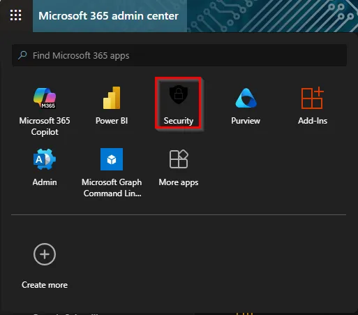 This will be good information for us to remember in just a second. After looking through the Admin portal, we can click the 9-dot icon on the top left and select Security.